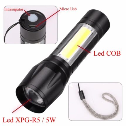 Lanterna de Mana 1 Led 5W XPE + COB Led si Acumulator