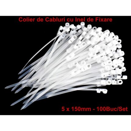 Colier de Plastic Alb 5 x 150mm, cu Cap Montabil – 100b/Set
