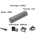 Acumulator reincarcabil 3,2v cu tehnologie LifePo4, model 18650 si putere reala de 2000mAh.