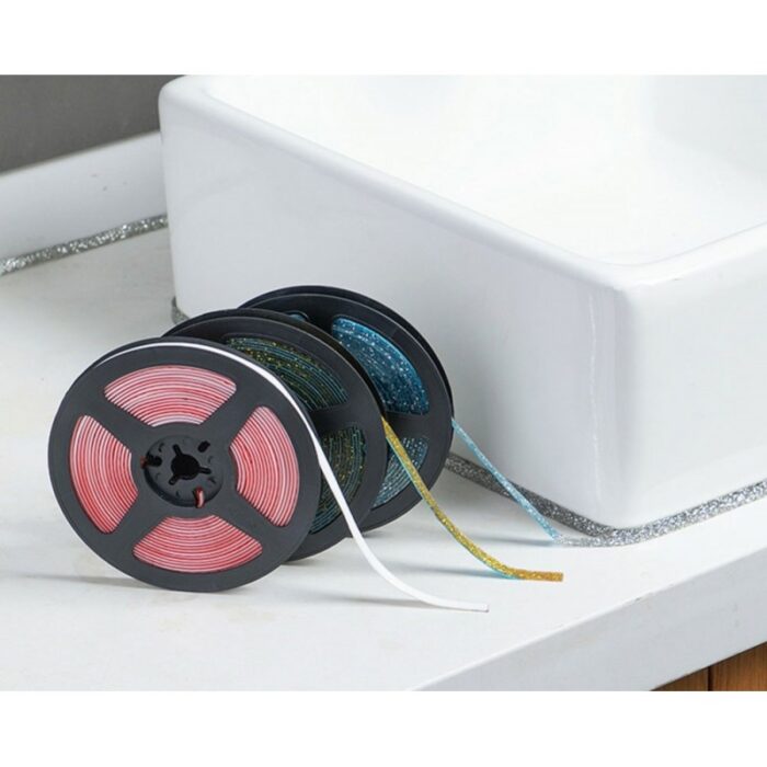 Banda se poate aplica cu ajutorul benzii adezive existenta pe ea sau cu alti adezivi de lipire.