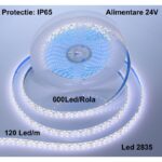 1 x Banda Led 24V Exterior, 2835 – 120led/m, Alb-Natural 4000K – 5m/Rol