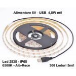 1 x Banda Led Alb-Rece 60Led/m, 5V-USB-5m/Rola