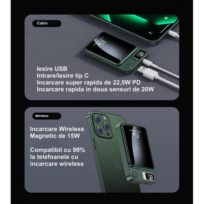 cu incarcare rapida Wireles magnetic mega safe si incarcare prin cablu Usb / tip C