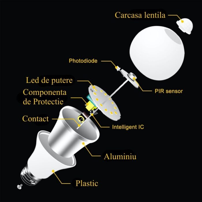 1 x Bec cu LED si Senzor de Miscare E27-12W-6500K