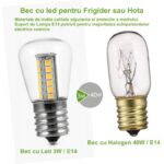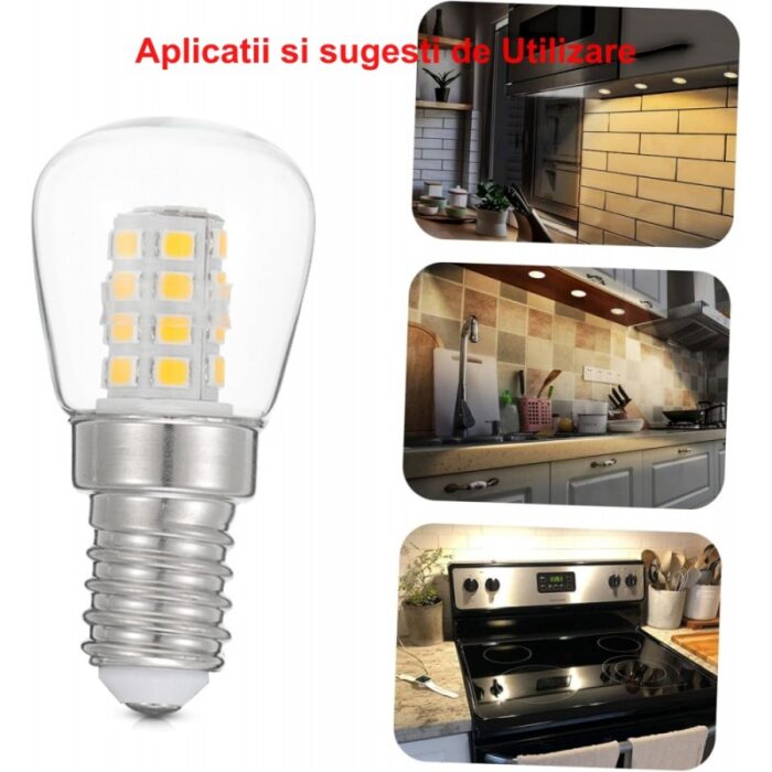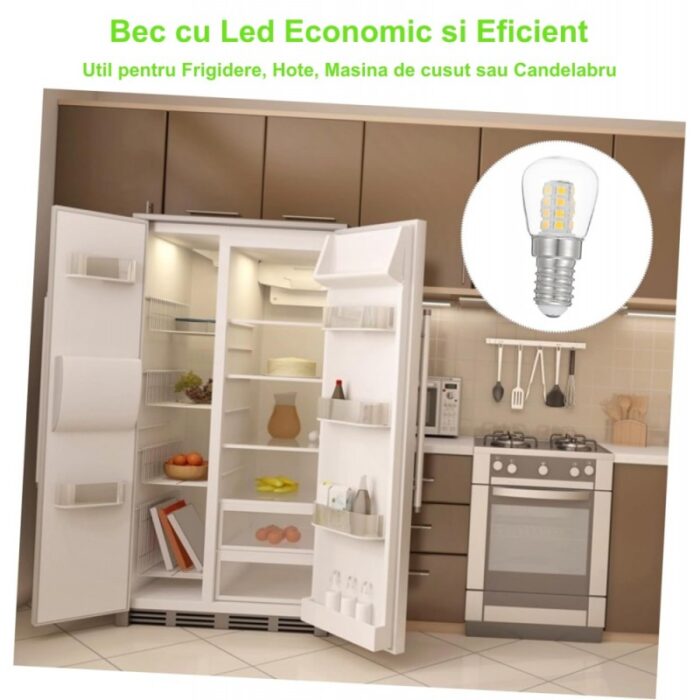 Acest Bec de Frigider cu Led 3W / E14 se poate utiliza si la hota de aragaz, sau candelabru.