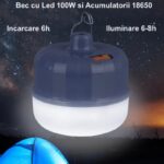 1 x Bec Led 100W cu Acumulator pentru Camping