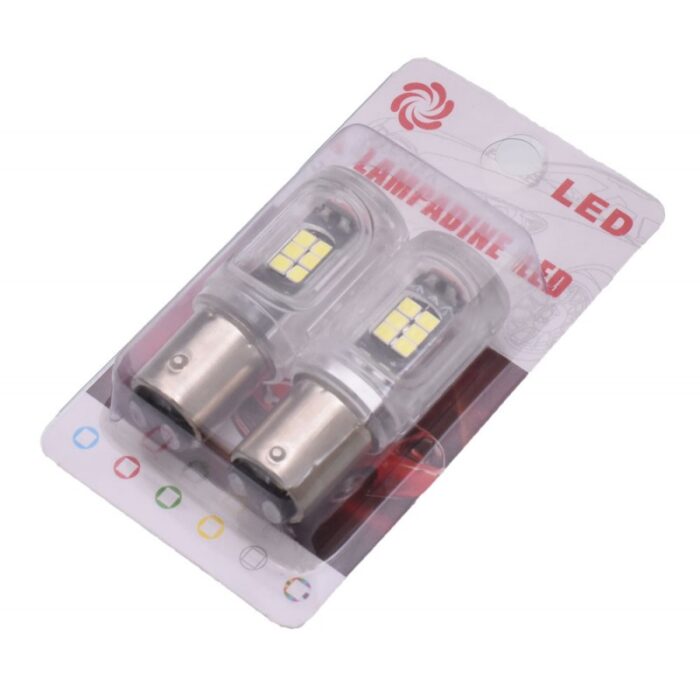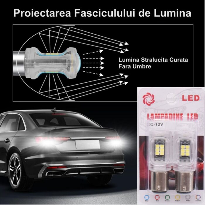 Set 2 bucati de becuri cu led bulb cu 16 leduri 2835 si soclu de prindere BAY15D pentru autoturisme.