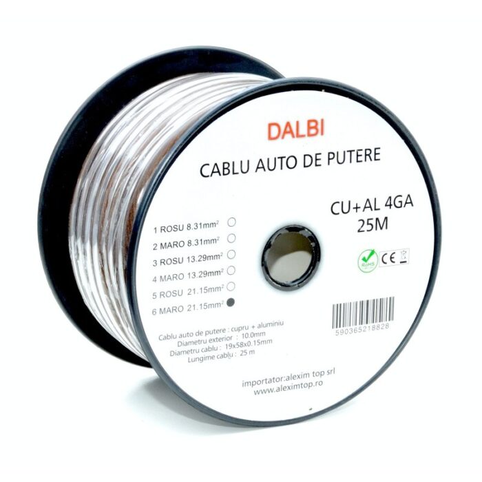 1 x Cablu Auto de Putere Maro CU+AL 4GA 10mm, 25m/Rola