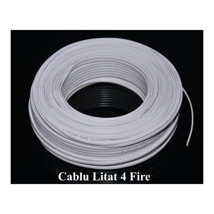 Cablu telefonic plat cu 4 fire ecranate cu diferite culori.