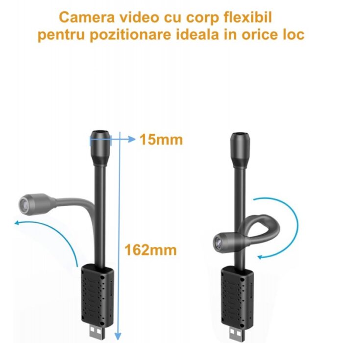 Avand dimensiuni mici de numai 16 x 2,5 x 1,5cm, portabila și ușor de instalat, aceasta camera mini flexibila,