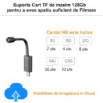 Aceasta înregistrează 24/7 și salvează imaginile timp de 30 zile, totodata suporta și