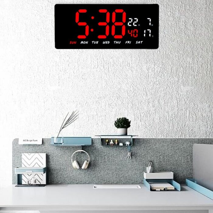 Acest ceas digital de perete cu alarma, temperatura și stativ este un accesoriu util