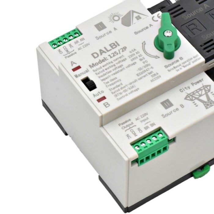 Acest Comutator ATS cu 2 Poli și 63A, asigura alimentare permanenta,