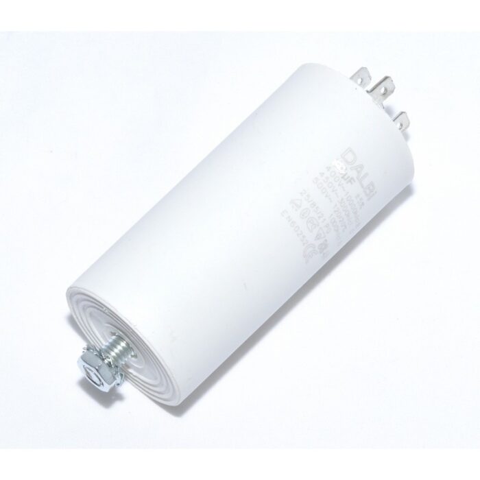 Condensatorul are un surub cu piulita ce ajuta la fixarea lui pe diferite suporturi.