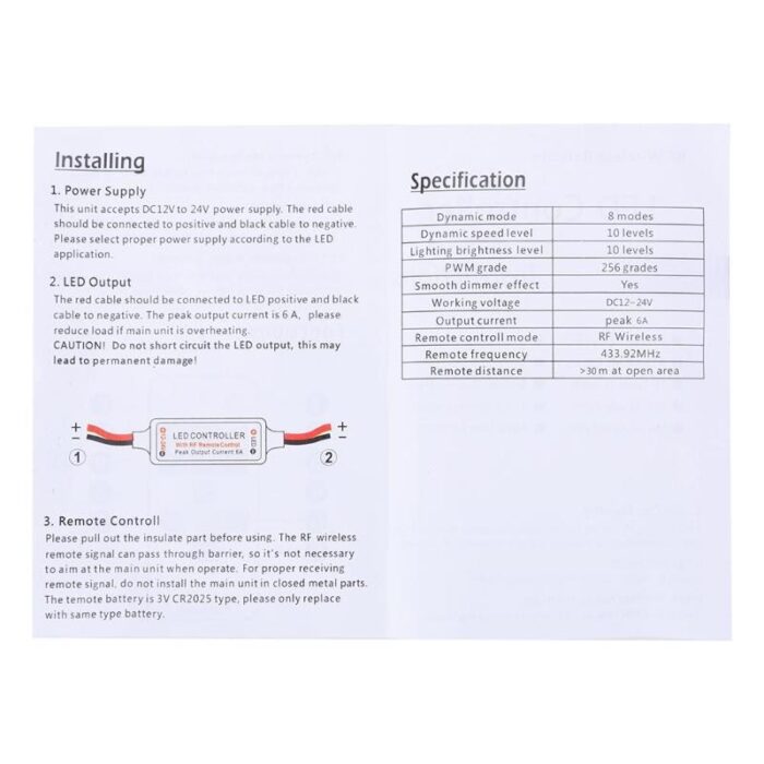 Controler cu telecomanda RF wireless pentru banda cu led SMD -3528,5050-5630-5730.