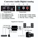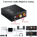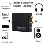 – Converteşte semanalul Audio Digital din Coaxial sau Optic (Toslink) in semnal audio Analog cu iesire de L/R mufa RCA mama