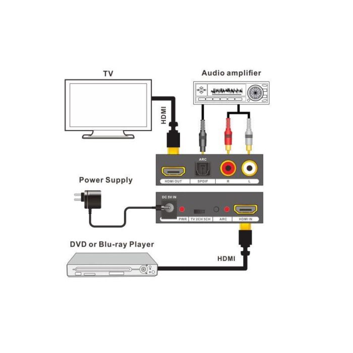 Convertorul are o intrare HDMI și o ieșire HDMI + analogica audio SPDIF + R/L