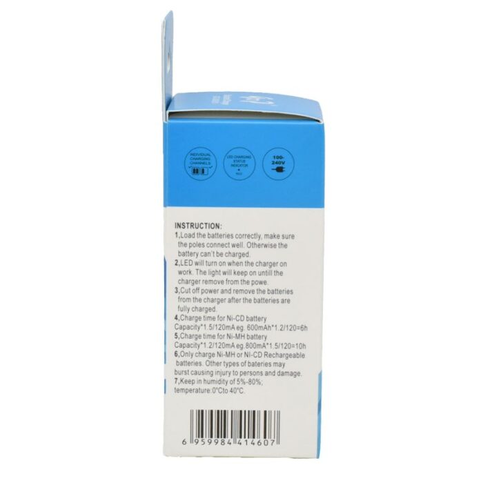 Iesire: 1,2V AA – 170mA / AAA – 80mA / 9V – 35mA +-20%