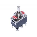 Întrerupător basculant ON-OFF-ON cu revenire și maneta din metal.