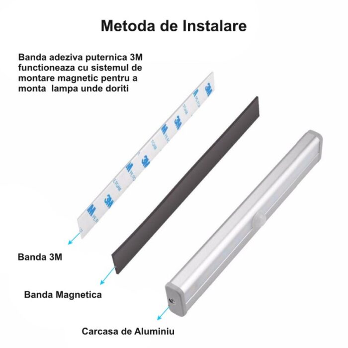 Pe lampa se monteaza banda de magnet si apoi banda dubla adeziva,