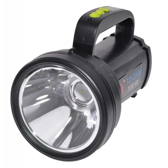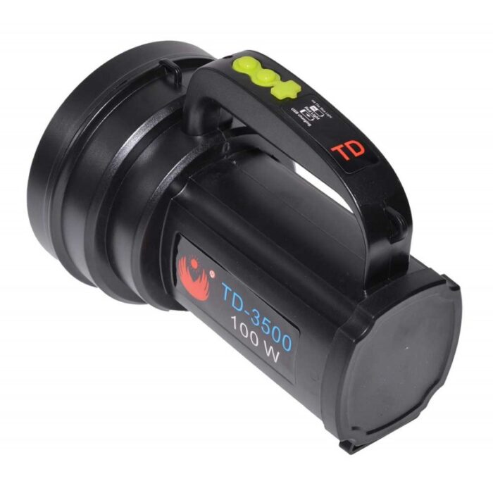 Lanterna de mana TD-3500 cu led de 100W, are 3 faze de lumina alb-rece.
