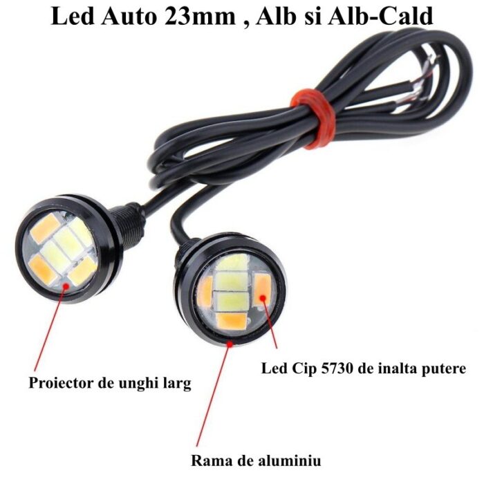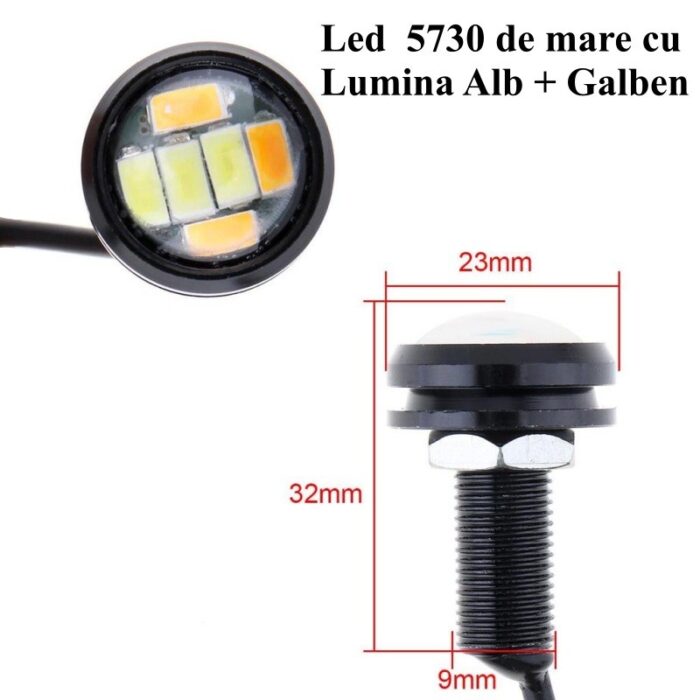 1 x Led Auto 23 MM-12V, 5730 Alb + Galben, 2 Buc/Set