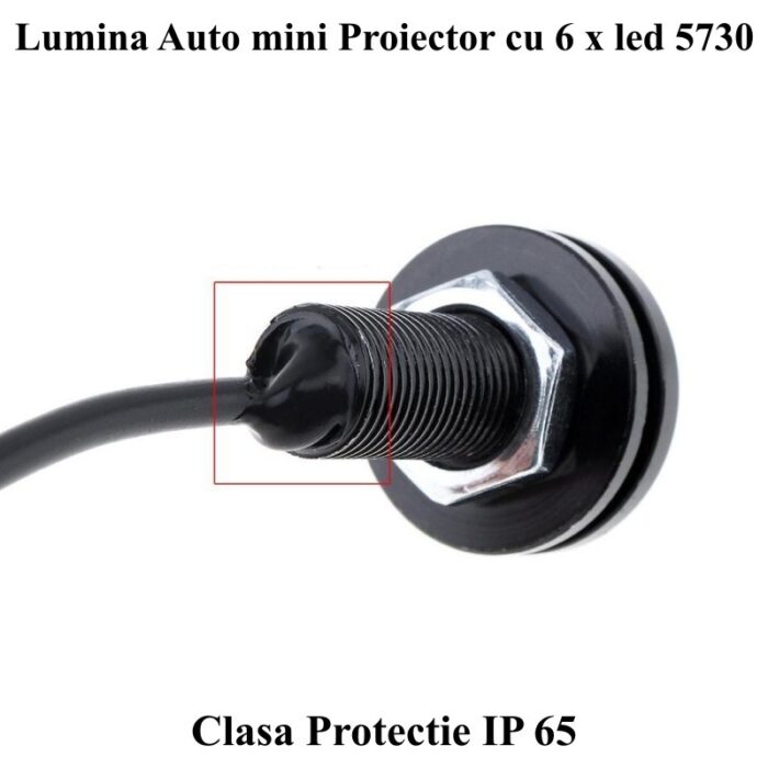Aceste mini proiectoare auto au corpul din aluminiu si o prindere pe piulita (intr-o gaura cu diametrul de 10 mm).