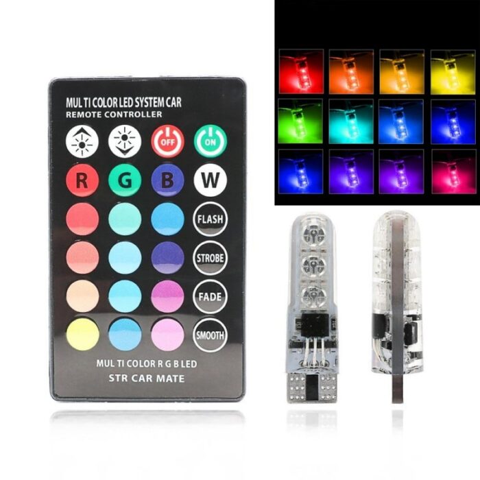 Bec Auto cu soclu T10 are tehnologie Led 5050 RGB si o putere de 5W.