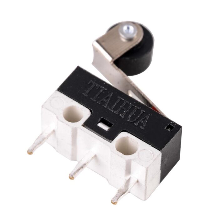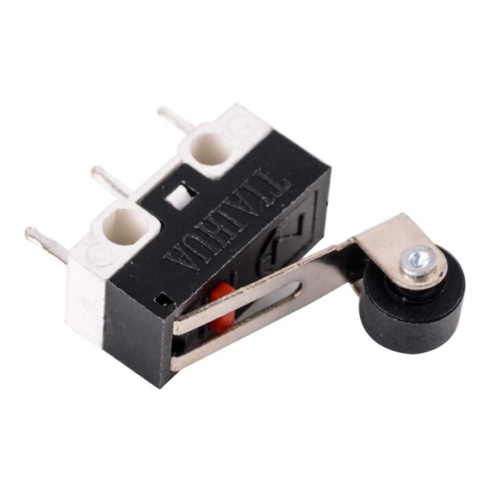 Mini intrerupator tip limitator cu lamela si rola pentru actionarea contactului.