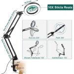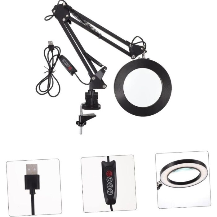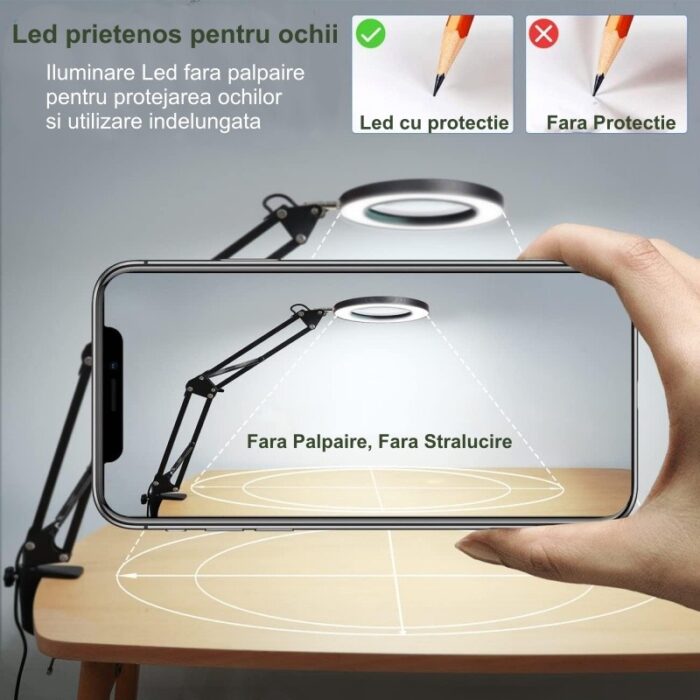 Vine echipata cu un clește de prindere integrat, care permite fixarea stabilă a lupei pe mese,