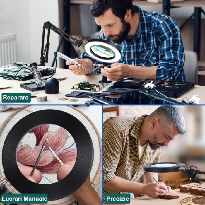 Este perfectă pentru hobby-uri precum broderia, modelismul, sau lucrul cu bijuterii