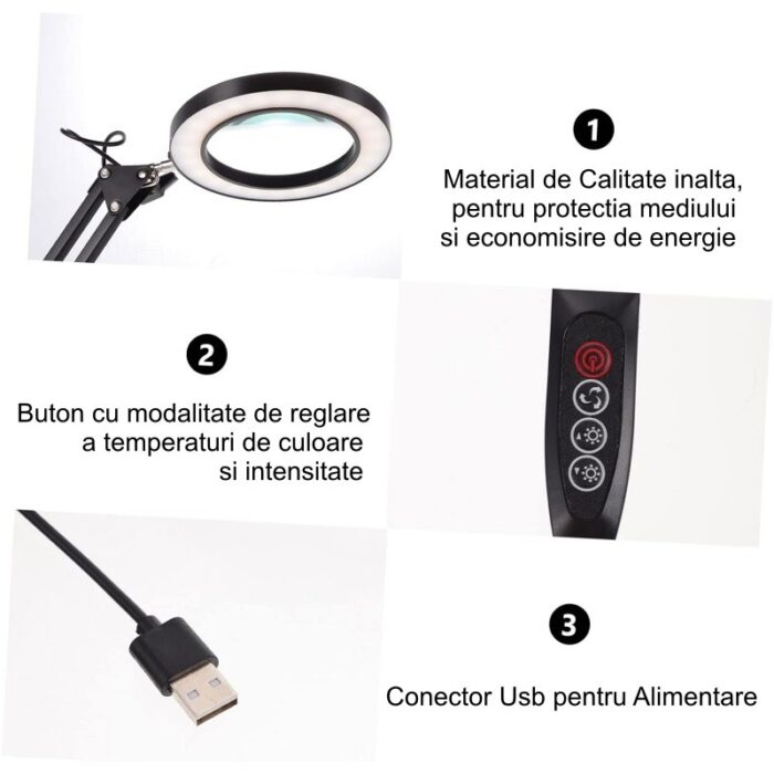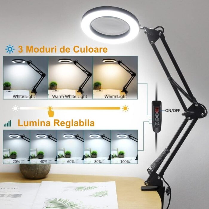 alb cald și lumină naturală. Acest lucru permite ajustarea luminii în funcție de preferințe și condițiile de lucru.