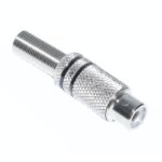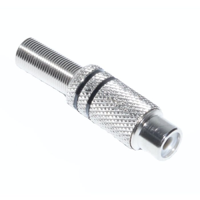 Conector tip Mufa RCA mama de metal cu arc si dunga neagra.
