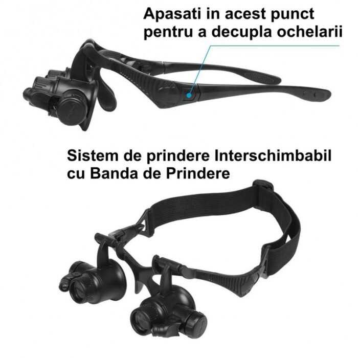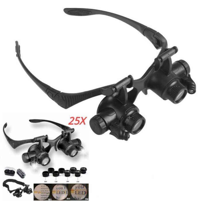 Ochelari cu lupa avand 4 dimensiuni de dioprii 10x, 15x, 20x, 25x, foarte utili in lucrari delicate