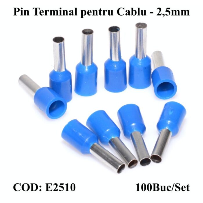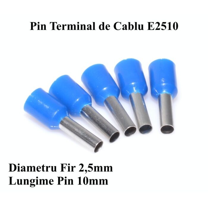 Pin Terminal de Cablu E2510 Albastru, 100Buc/Set