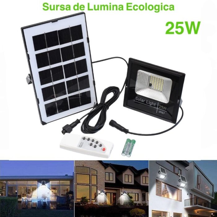1 x Proiector 25W cu Panou Solar și Telecomanda