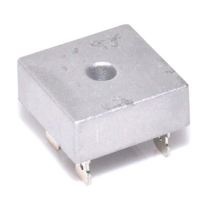 Punte redresoare patrata din aluminiu, utilizata in domeniul electronicii sau electrica tehnica, casnica și industriala.
