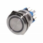 Push buton metalic cu diametru de 22mm si lumina albastra, comutator ce poate fi folosit la
