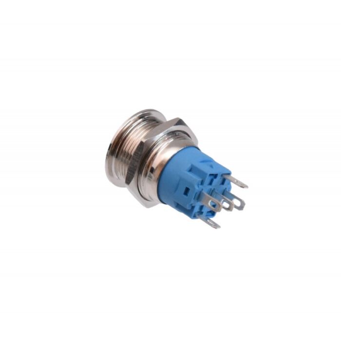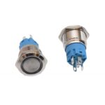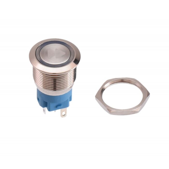 Push buton metalic cu diametru de 19mm si lumina albastra.