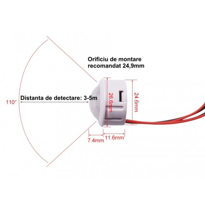 Senzorul se alimenteaza la tensiune intre 12V – 24V DC si se poate monta,