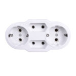 Triplu ștecher 2 + 2 posturi, având contacte de aliaj din alama și plastic ABS ignifug,